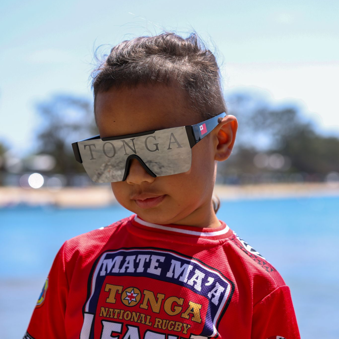 Tonga Edition WAVY SHADES — bold cultural eyewear inspired by Tongan pride and island heritage. Featuring panoramic TONGA imprint, national colours, and lightweight summer-ready design. Pacific-owned. Built for culture, family and the next generation.